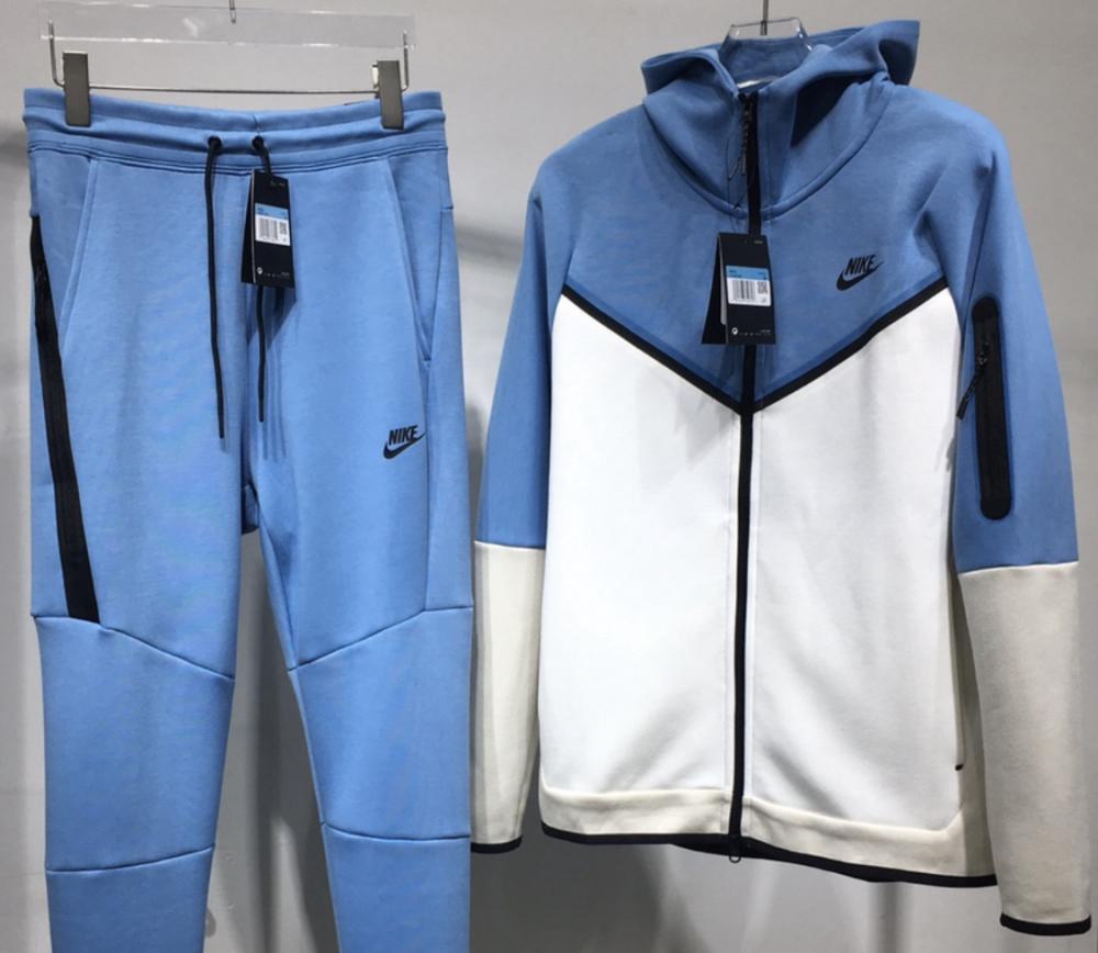 طقم نايك تك فيلس باللون الازرق سماوي و الابيض طقم كامل